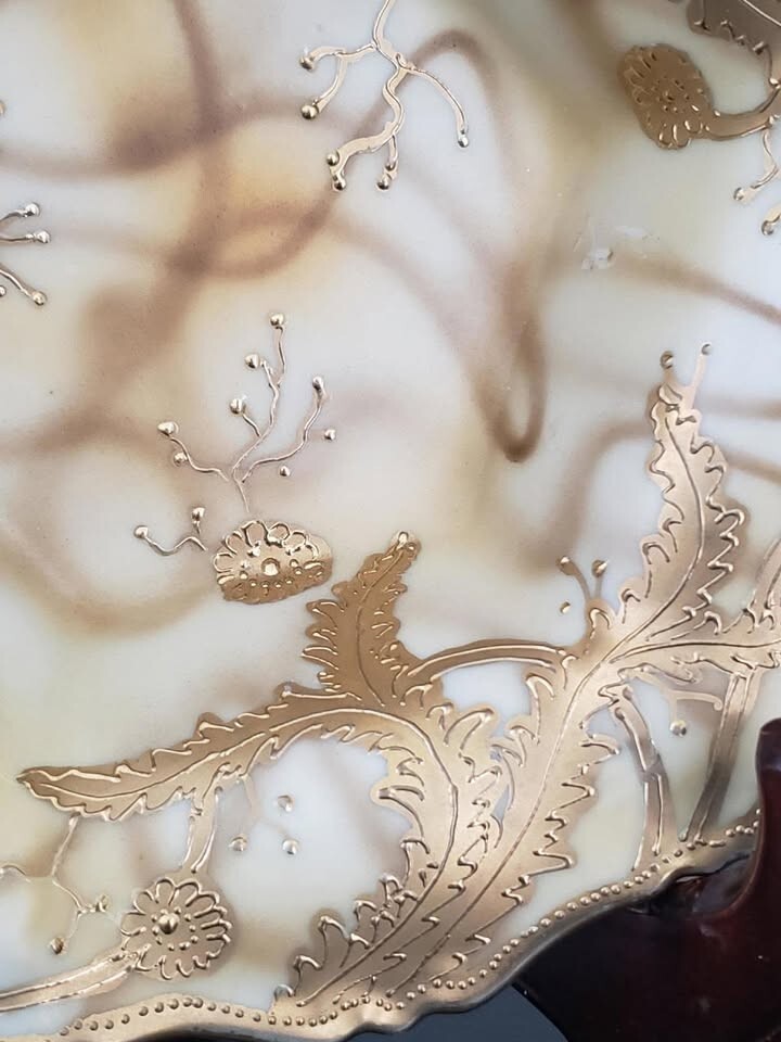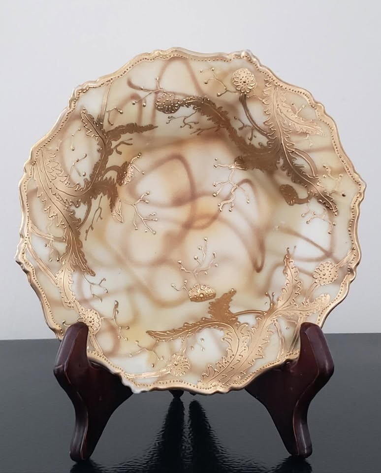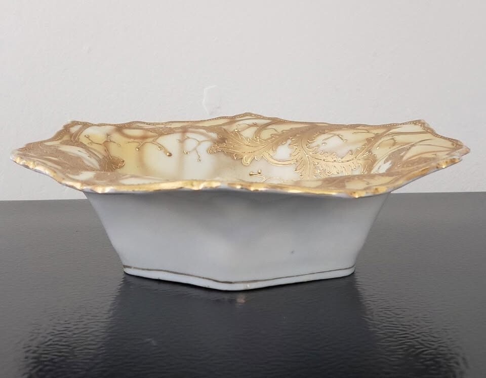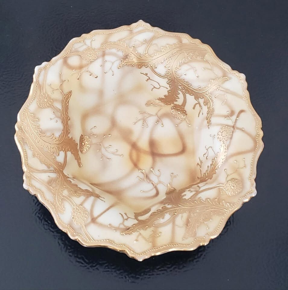 Antique Nippon Hand Painted Porcelain Decorative Bowl. Gold Embossed Foliage