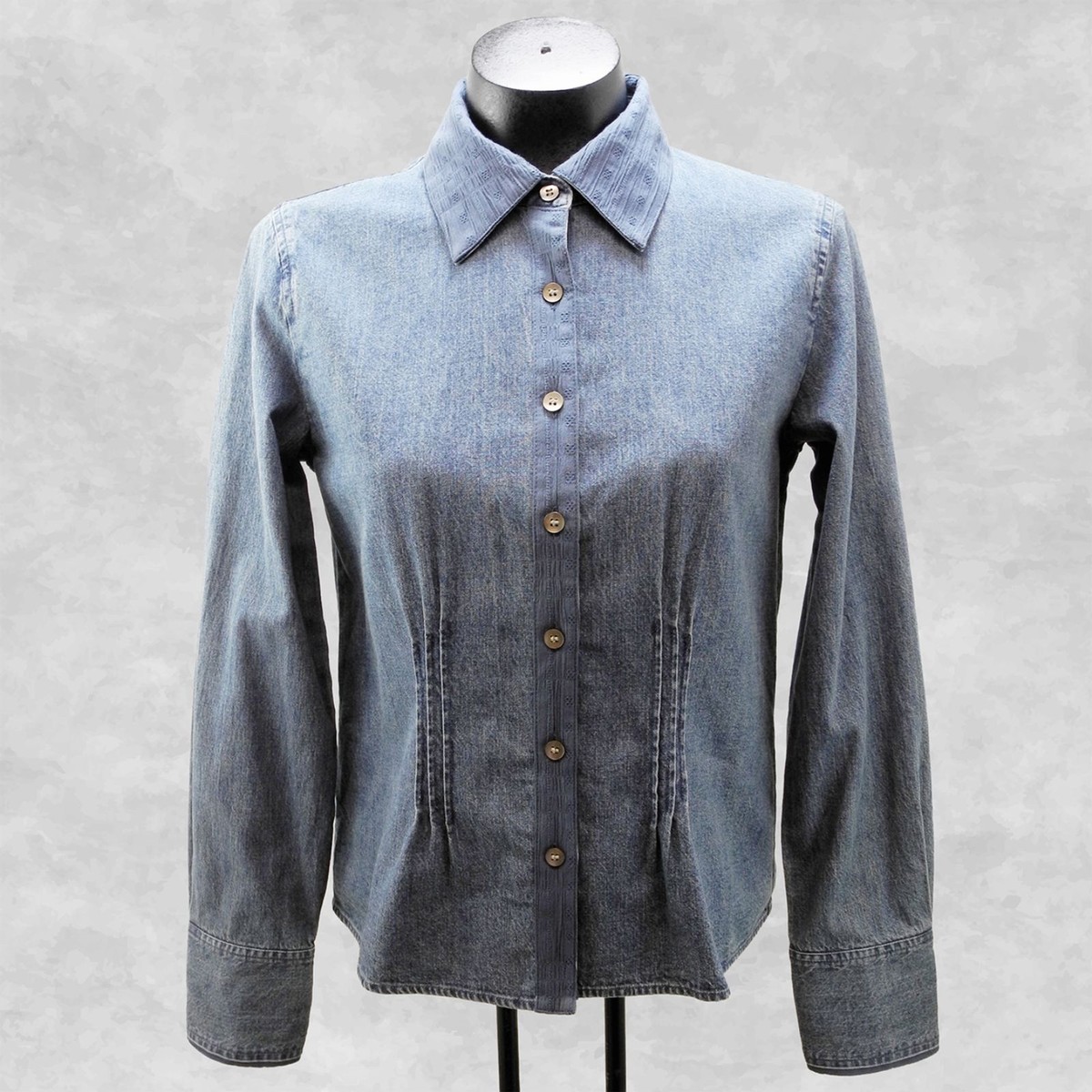 J. Jill Blue Denim Pintucks Textured Cotton Trim Long Sleeve Shirt - Women's XS
