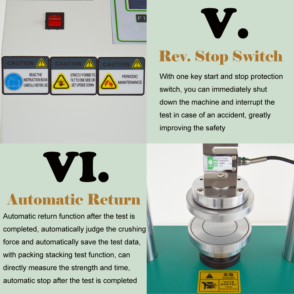 Cardboard compression tester known as computer monitoring control compression tester, electronic compression tester, is the basic instrument of cardboard / paper compressive strength testing. The tester equipped with various special accessories can do a full range of testing, which includes Ring Crush Testing, Flat Crush testing, Edge Compressive Testing, Adhesive Strength.Testing and other general compression testing, to a variety of materials like paper, packaging materials, etc. It is a multi-functional testing equipment.