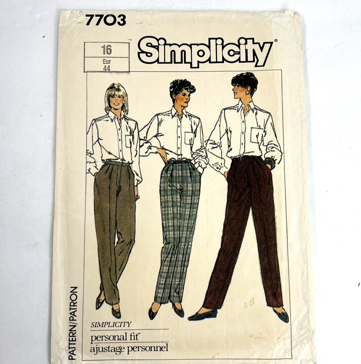 Vintage Simplicity Sewing Pattern Misses High Waist Pants Sz 16 7703