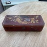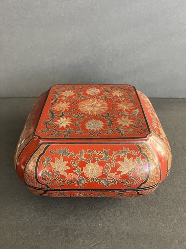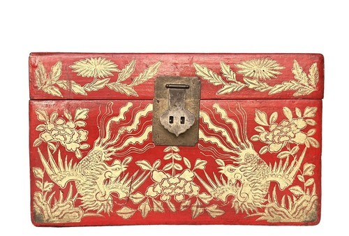 Gorgeous Hand-Painted/Inked Red Gold with Black Outlines Chinese Wooden Box