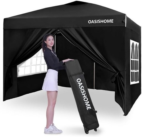 WHAT'S INCLUDED: 1 fully assembled folding One Touch powder-coated frame. No tools required. 150D Polyester fabric top that's fire and water-resistant. 1- set of stakes and guy ropes for tie-down options. 1 Sto n Go Mobility system.
