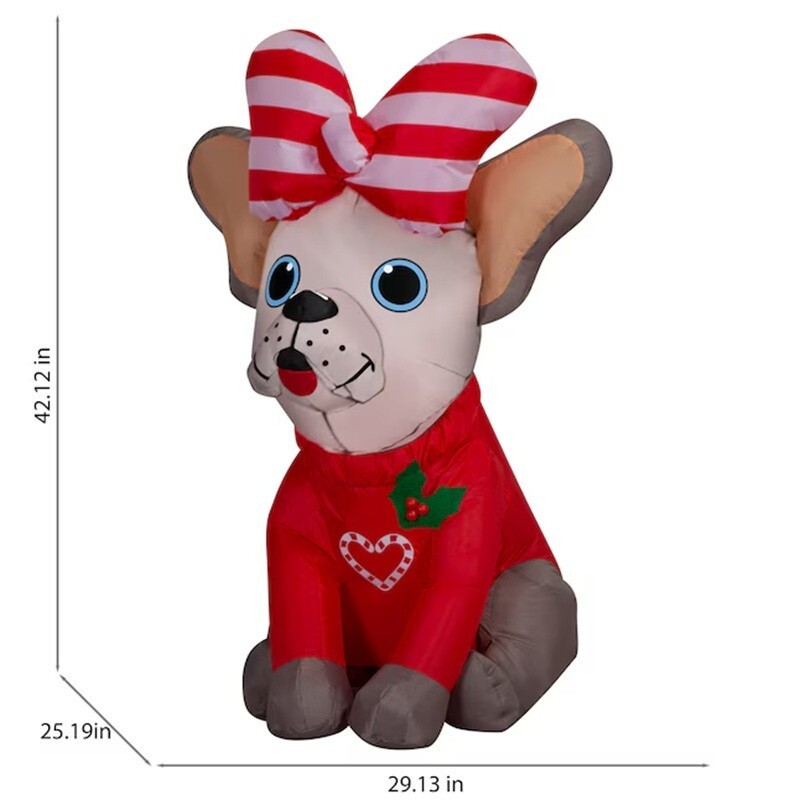 3.5-FT H x 2.4-FT W x 2.1-FT D indoor/outdoor Airblown Inflatable Christmas French Bulldog in red outfit