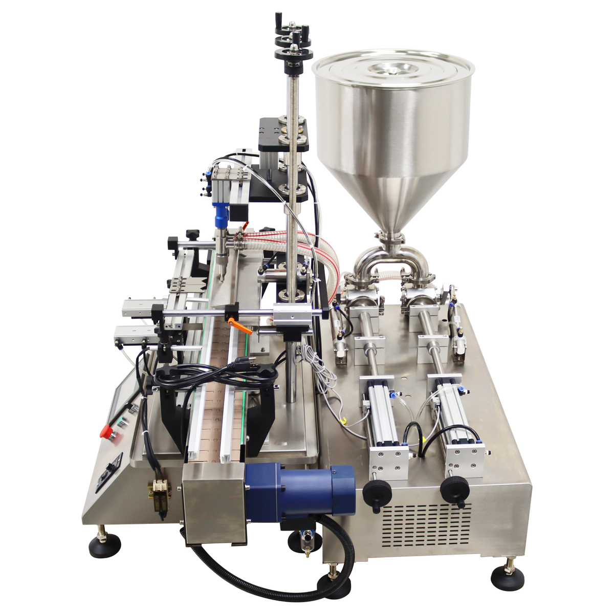 Automatic Paste Filling Machine w/Conveyor Belt Double Head 8mm Nozzle 10-100ml