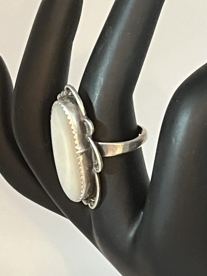 Rare Vintage Navajo Signed Mother of Pearl Sterling Silver Ring