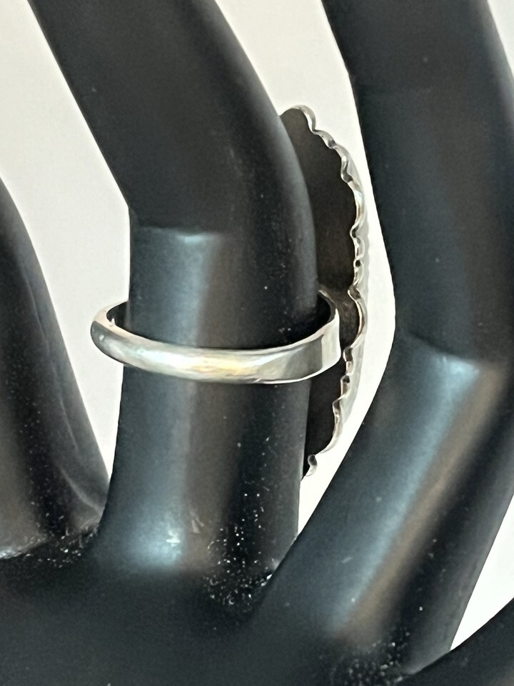 A GIFT BOX AND BAG WILL BE INCLUDED WITH EVERY ITEM PURCHASED DURING THE HOLIDAY SEASON.Rare vintage sterling silver with mother of pearl set in a decorative sterling base. Size 7. The stone measures 1 inch by 0.4 inches wide. The silversmith signed the ring, but I cannot make out the full signature, Paul S. This is a good example of vintage Navajo jewelry and is a rare piece.