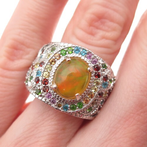 925 Sterling Silver Tourmaline and Opal Ring and 17 similar items