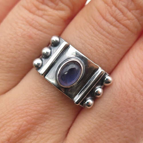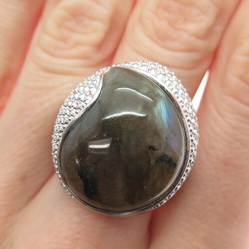 Vintage 925 Sterling Silver Green Labradorite Size 7 Ring