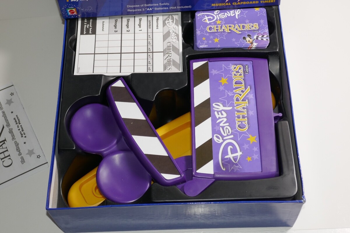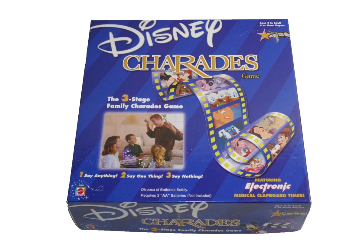 Up for sale is a Mattel Disney Charades Game. This is complete with all the pieces. The box has little shelf wear and small puncture in the front corner.
