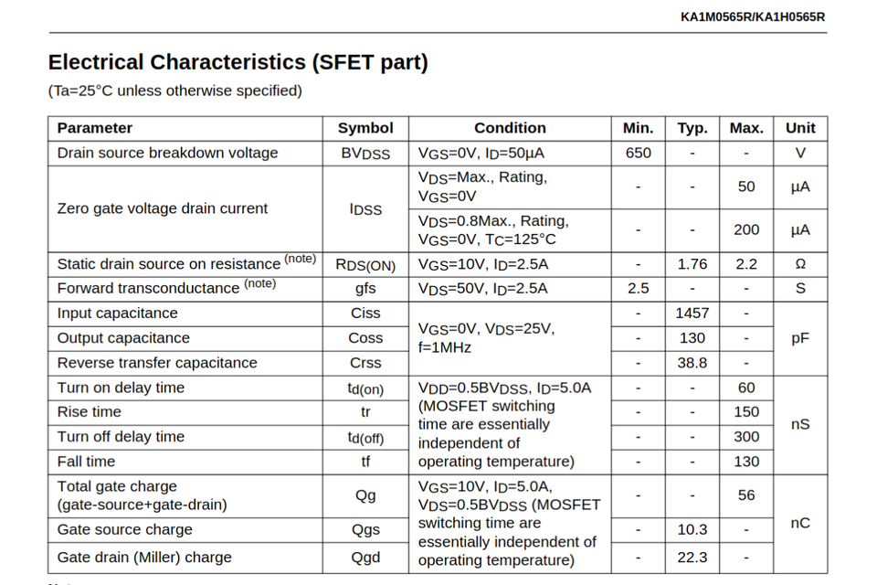 1X KA1M0565R-TU 1M0565R Fairchild Power Switch (FPS) Current-mode 650V 5A 67kHz