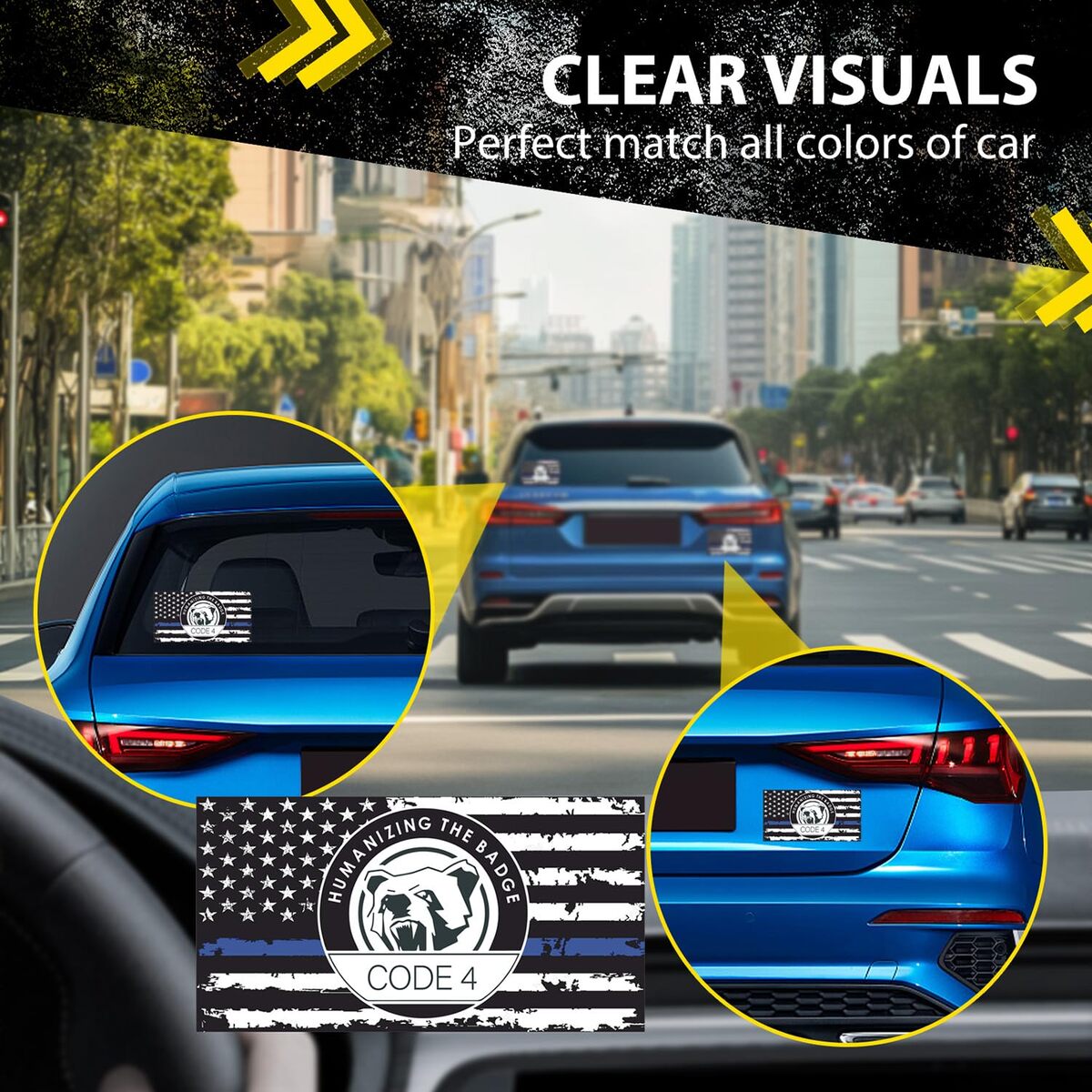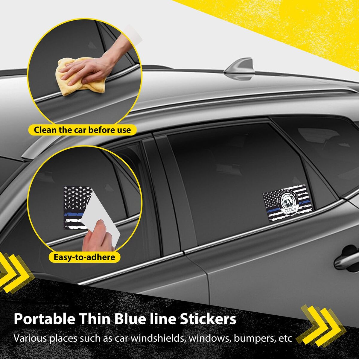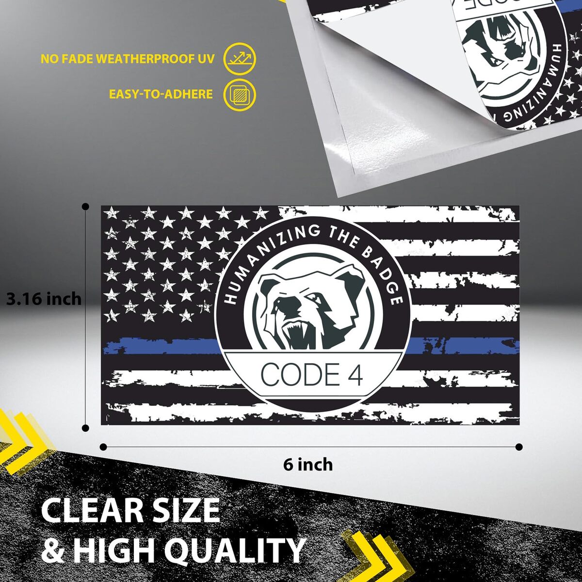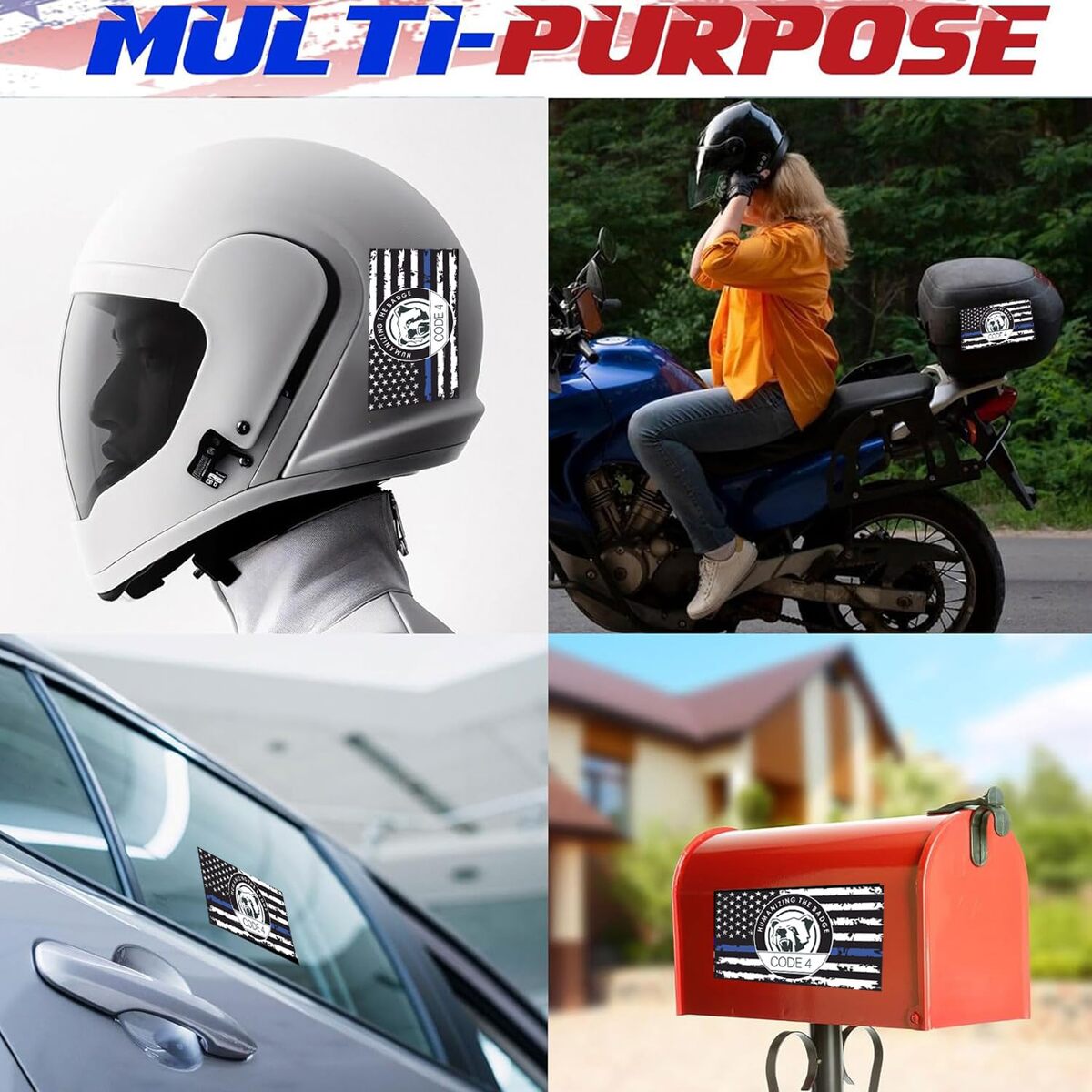 ?Package Dimensions?Contains four premium Thin Blue line Code 4 decals, each measuring 6 x 3.16 inches (15.2 x 8 cm), Blue American flag stickers add a patriotic touch and are perfect for supporters of law enforcement officers.