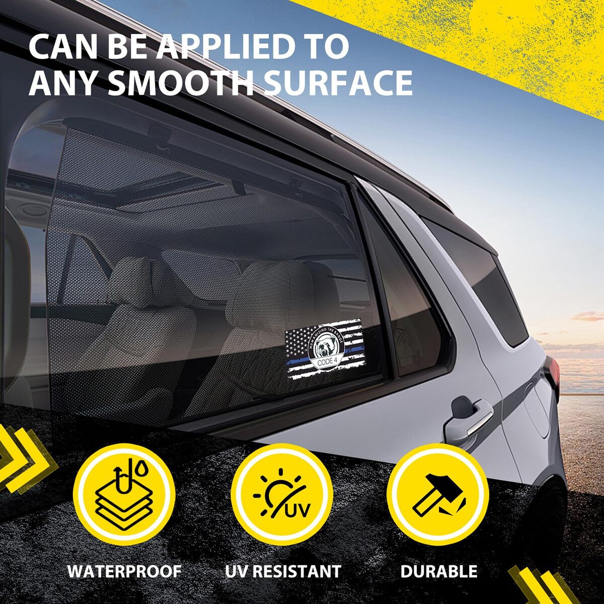 ?Military-Grade Durability?Waterproof adhesive withstands extreme weather conditions. Made with 100% premium vinyl and UV-resistant inks to prevent fading and maintain vibrant colors