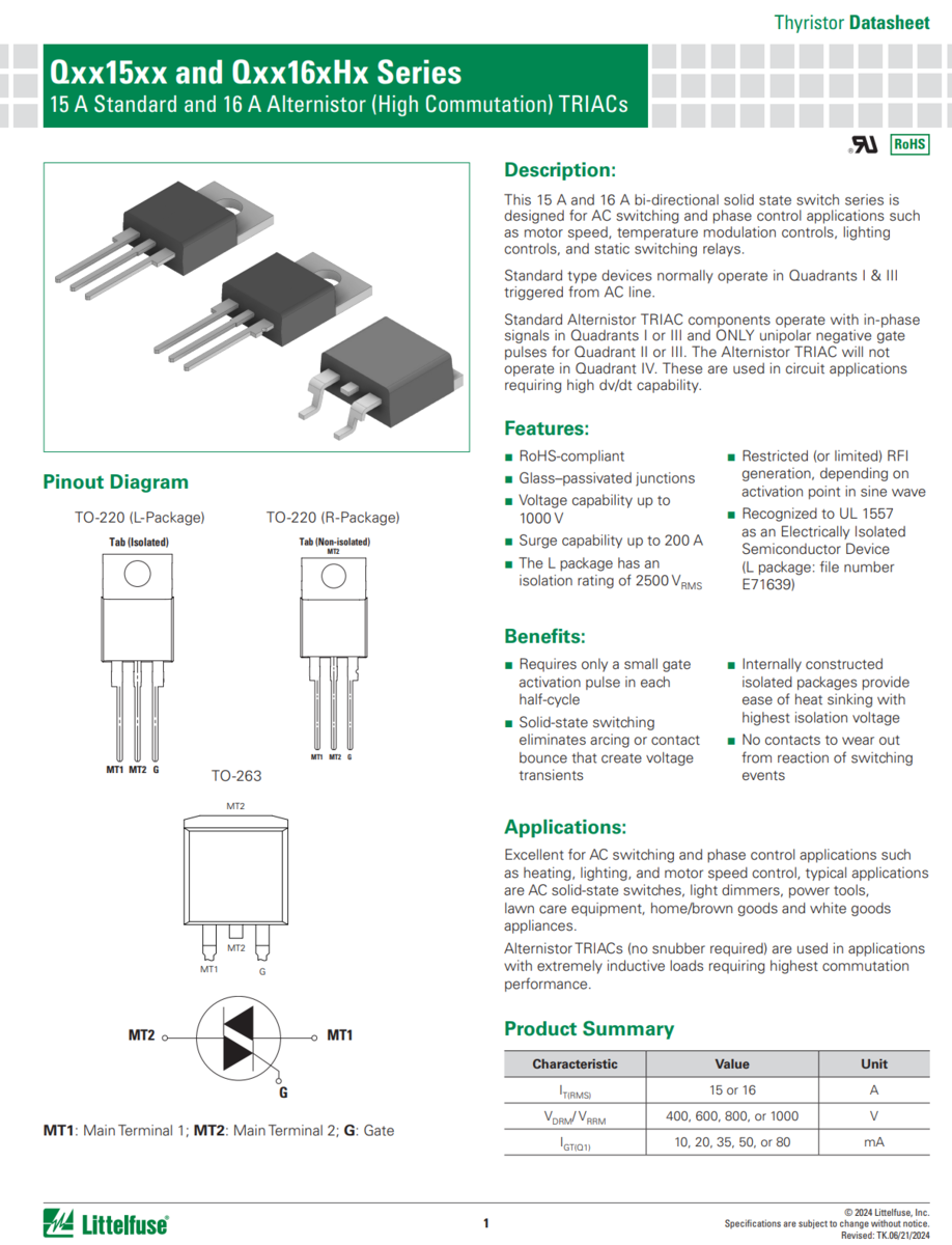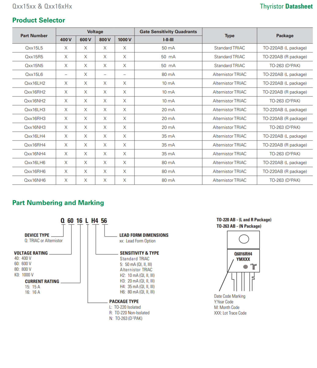 10X Q6015L5 Teccor Triac 15A 600V TO-220-3