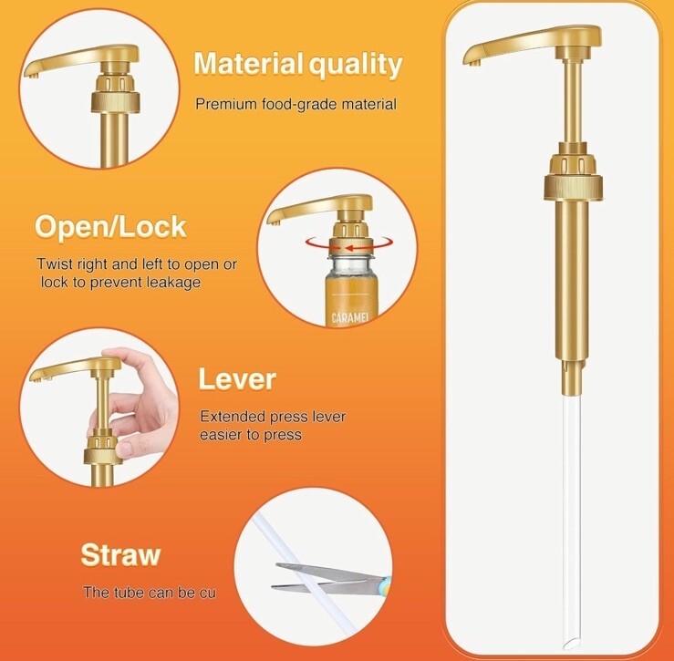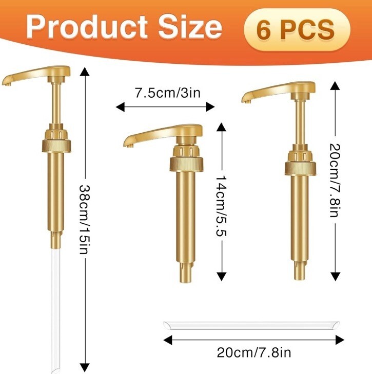 Coffee Syrup Pumps, 6 Pack Gold Syrup Pump, Skinny Syrup Pump for 750ml 25.4o...