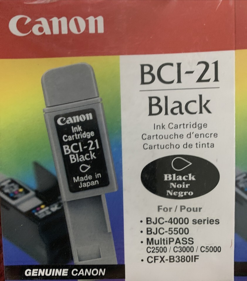 2 PC BCI-21 BLACK INK CARTRIDGE LOT CANON OEM GENUINE