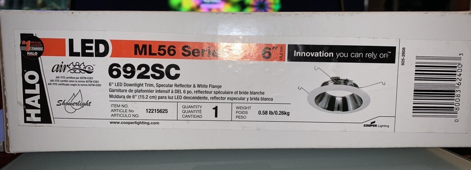 Upgrade your lighting with this high-quality Halo 692SC 6" ML56 Series LED Downlight Trim. The brand new unit is designed to provide exceptional illumination and energy efficiency, with a 5-star Energy Star rating and an EC range of A+++ to G. Made in Mexico, this downlight trim is perfect for industrial lighting fixtures, facility lighting, and facility maintenance and safety.