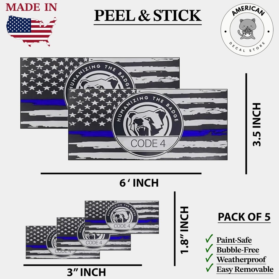 5 calcomanías de bandera de línea azul fina para automóvil Car soporte policial