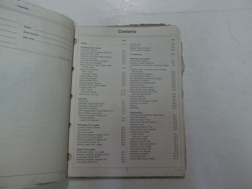 Operators manual is worn and damaged throughout with loose pages within. Pages MAY BE MISSING within the book. Over all the contents within are in legible condition.