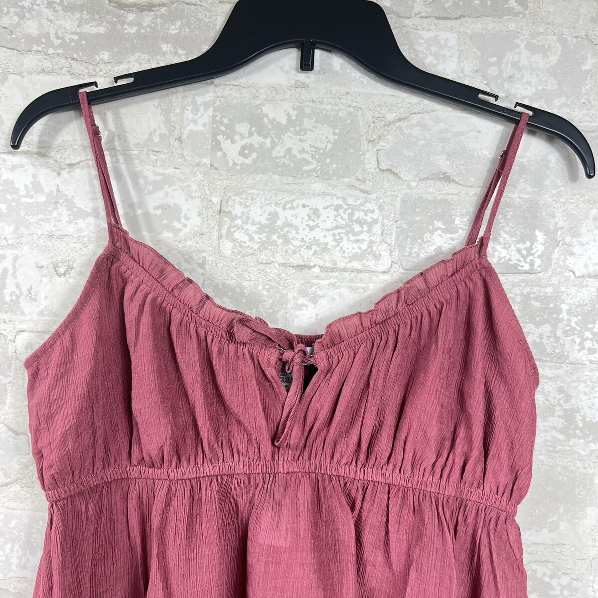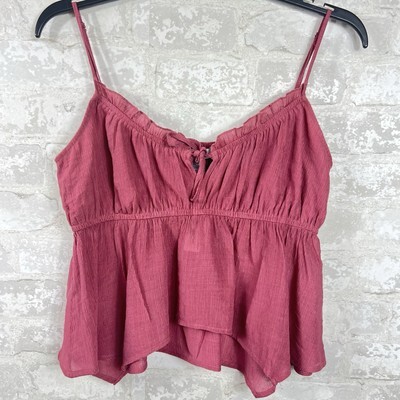 Keywords: RSQ, cami top, peplum top, tie front blouse, sleeveless top, casual top, maroon top, spaghetti strap top, smocked bodice, women's top, summer top, blouse, medium