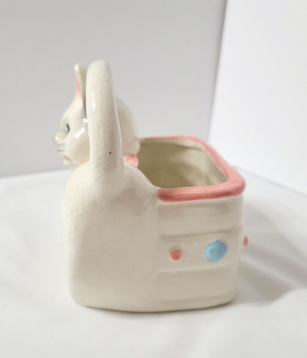 Napco White Cat Planter Vtg Green Eyes Pink and 50 similar items