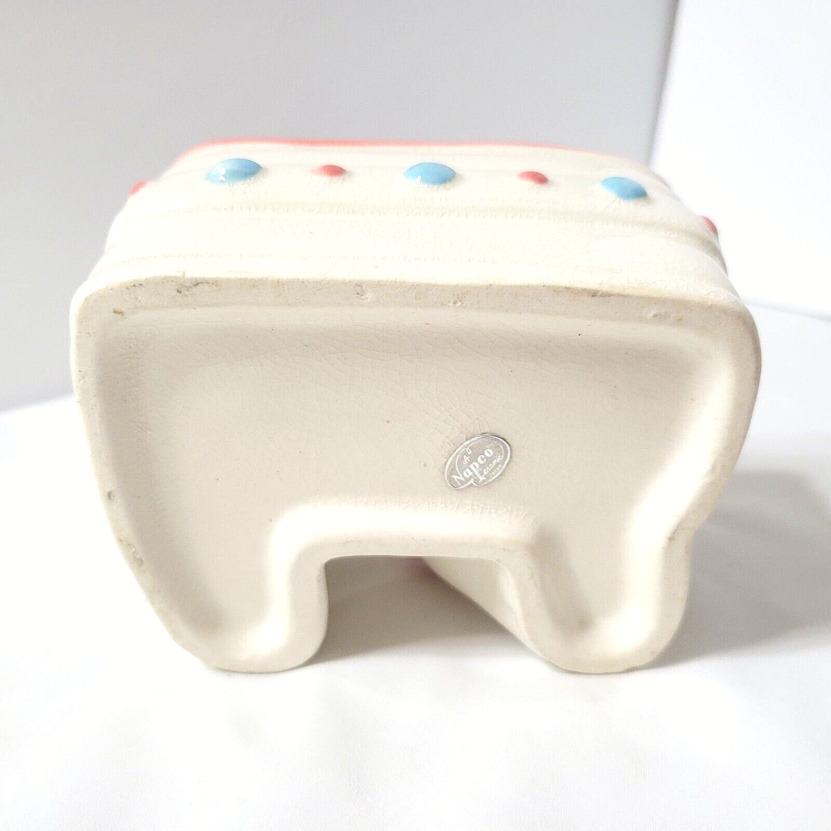 Napco White Cat Planter Vtg Green Eyes Pink Bow Curled Tail Baby Girl