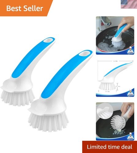 409 Pot and Pan Kitchen Brush. Deep cleaning bristles for everyday messes. Great for plates, pots, pans, utensils, and more. Color: Purple and gray. Approximately 11 inches long. Package contains 1 Pot and Pan Brush. DDD-86227