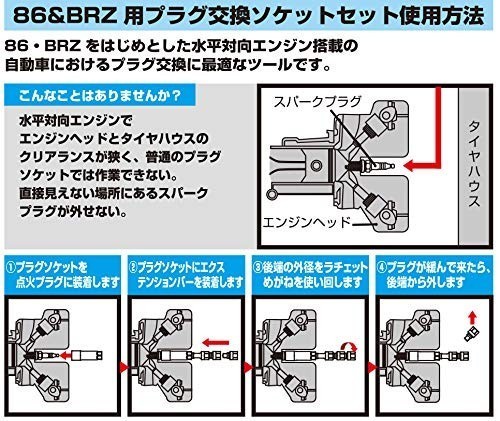 Ideal for replacing plugs on horizontally opposed engines. In tight spaces, use a 17mm ratchet box on the outer hexagonal part to loosen it, and when the space becomes limited, remove the top and use it (reverse the procedure when tightening). Perfect for 86/BRZ.