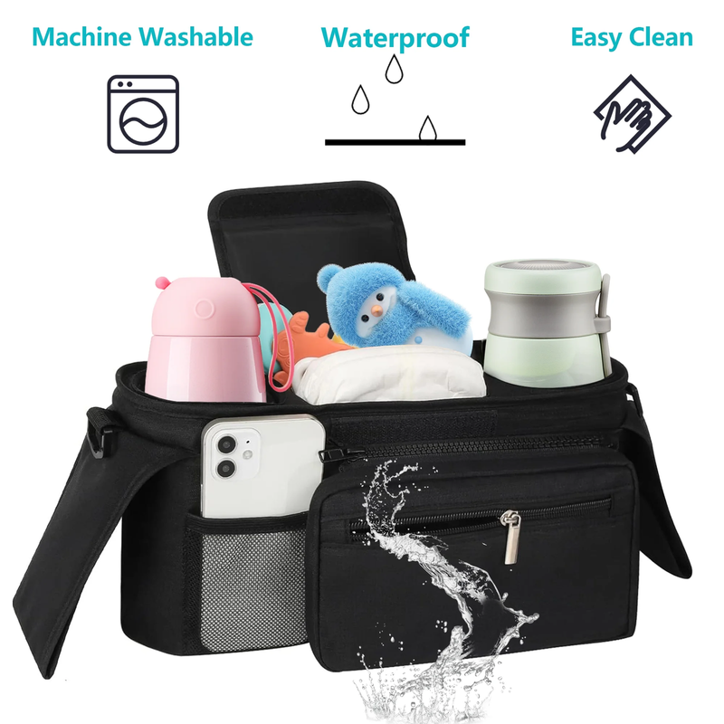 Versatile Bag - With a detachable wristlet pocket to take your most needed items with you. You can also remove the entire organizer from the stroller and wear it over your shoulder using the included straps.