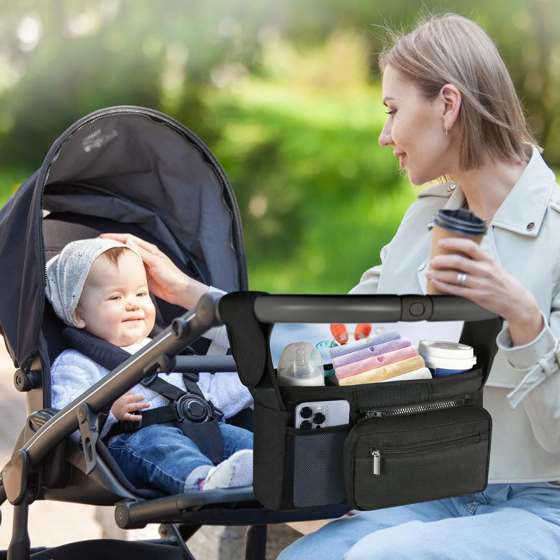 Universal Stroller Organizer Non Slip Straps Stroller Caddy with Insulated 2 Cup