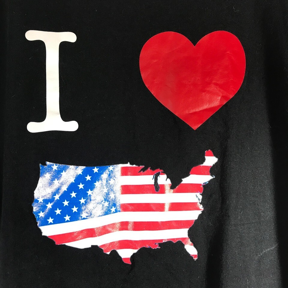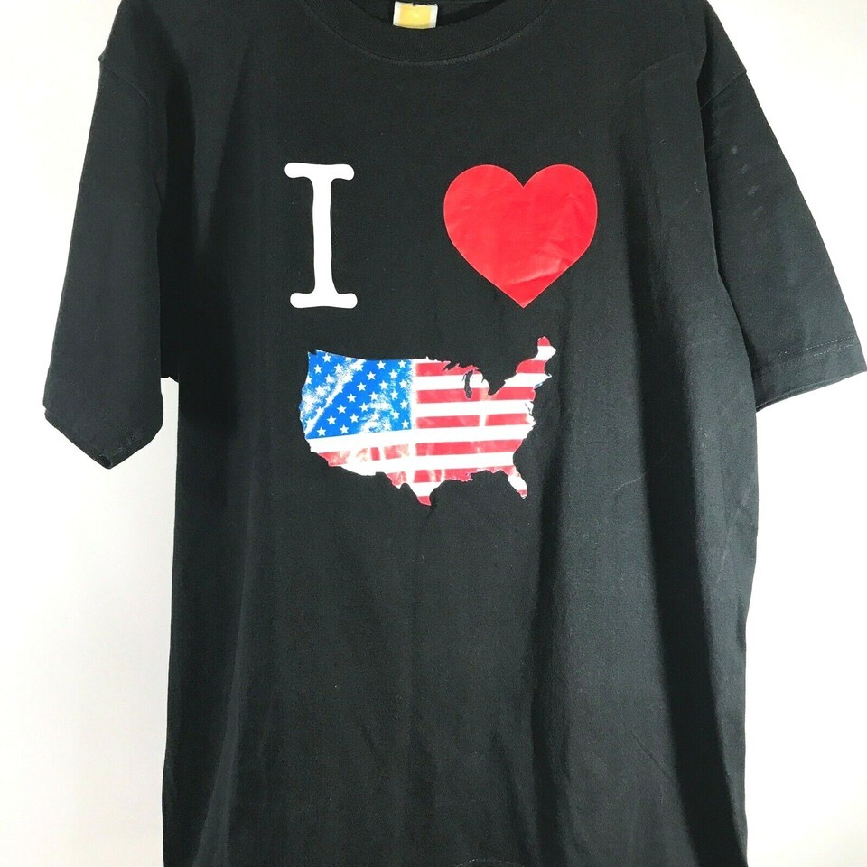I Love USA America Black Patriotic T Shirt XL New Jersey Short Sleeve Flag Vtg