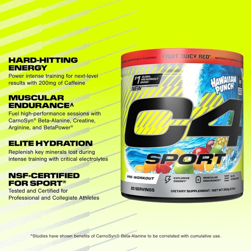C4 Sport Pre Workout Powder - NSF Certified for Sport - Elite Hydration - Electr