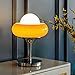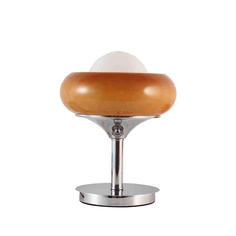 Product description: Transform your space with this enchanting vintage-style table lamp featuring a distinctive cream Murano-inspired glass shade shaped like a charming egg tart. Standing 14.6 inches tall with an 11-inch diameter, this artistic lighting piece combines nostalgic design with contemporary functionality. The luminous dome casts a warm, inviting glow while the sleek chrome base adds a modern touch, making it perfect for nightstands, side tables, or desk spaces. The lamp's sculptural form serves as both a practical light source and an eye-catching decorative element, ideal for creating ambiance in bedrooms, living areas, or creative spaces. Its compact size and balanced proportions make it a versatile addition to any room, while the unique design adds character to both traditional and contemporary interiors. The artisanal craftsmanship showcases attention to detail in every curve, making this lamp a standout piece for design enthusiasts and collectors alike.