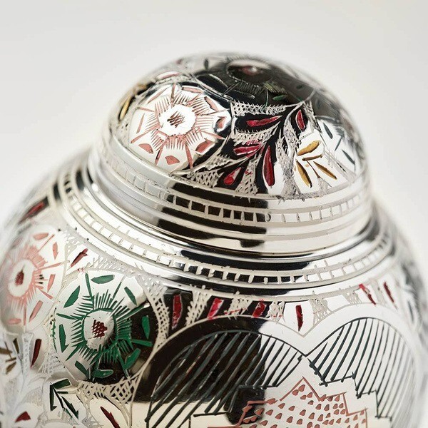 ยท A beautiful brass, keepsake-size urn with a reflective finish.