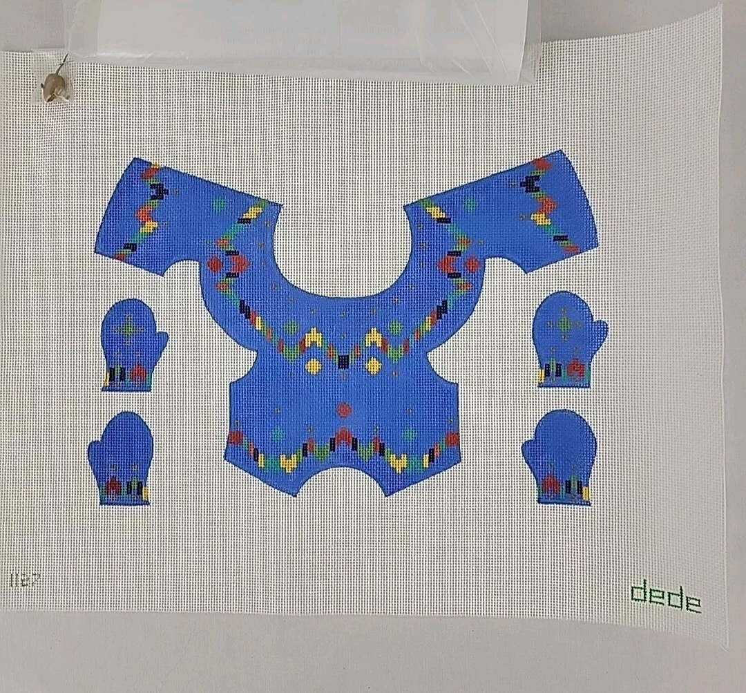 NEW Handpainted Needlepoint Canvas Dede Mittens Sweater Bear Plush Cat Clothes