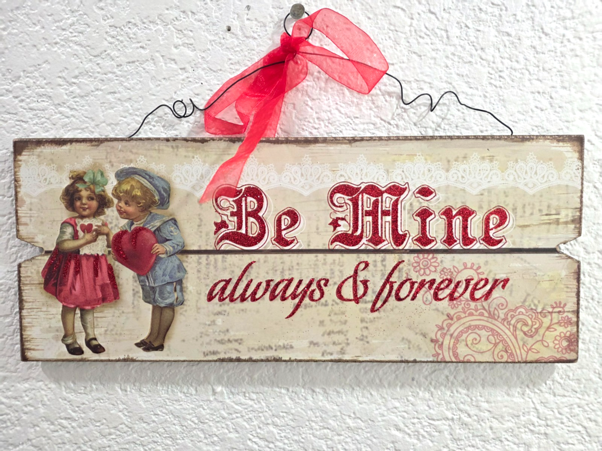 Vintage Style Valentine's Small Children Hanging Wood Sign Wall Decor 13"