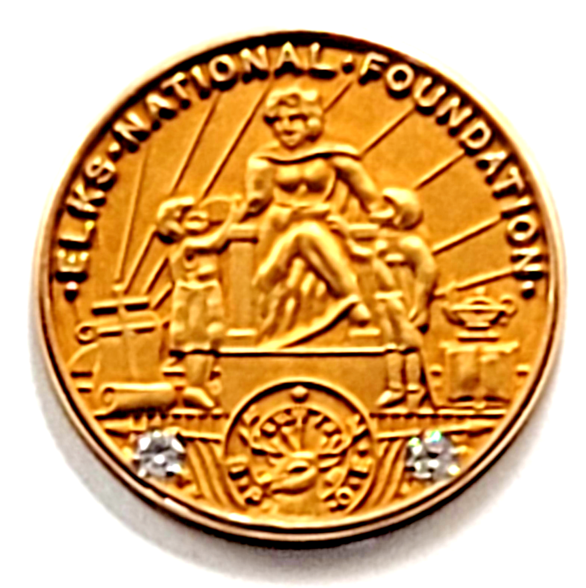 Elks National Foundation 10K Gold Filled Fraternal Organization Pin Two Stones