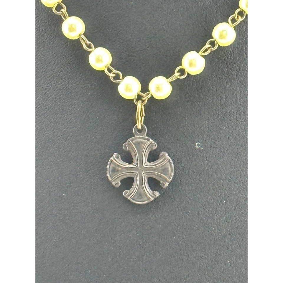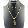 Native American Rosary Style Chain Pearl Cross Necklace Earrings Set