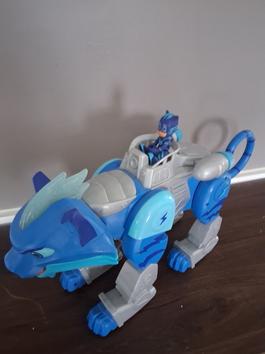 The product is a PJ Masks Cat Boy action figure with a tiger rider, likely made with plastic or similar materials. This toy would be an exciting addition to any child's collection, allowing them to recreate adventures from the popular PJ Masks series. The combination of Cat Boy and a tiger rider adds a unique twist to the gameplay, making it a desirable item for young fans of the franchise.