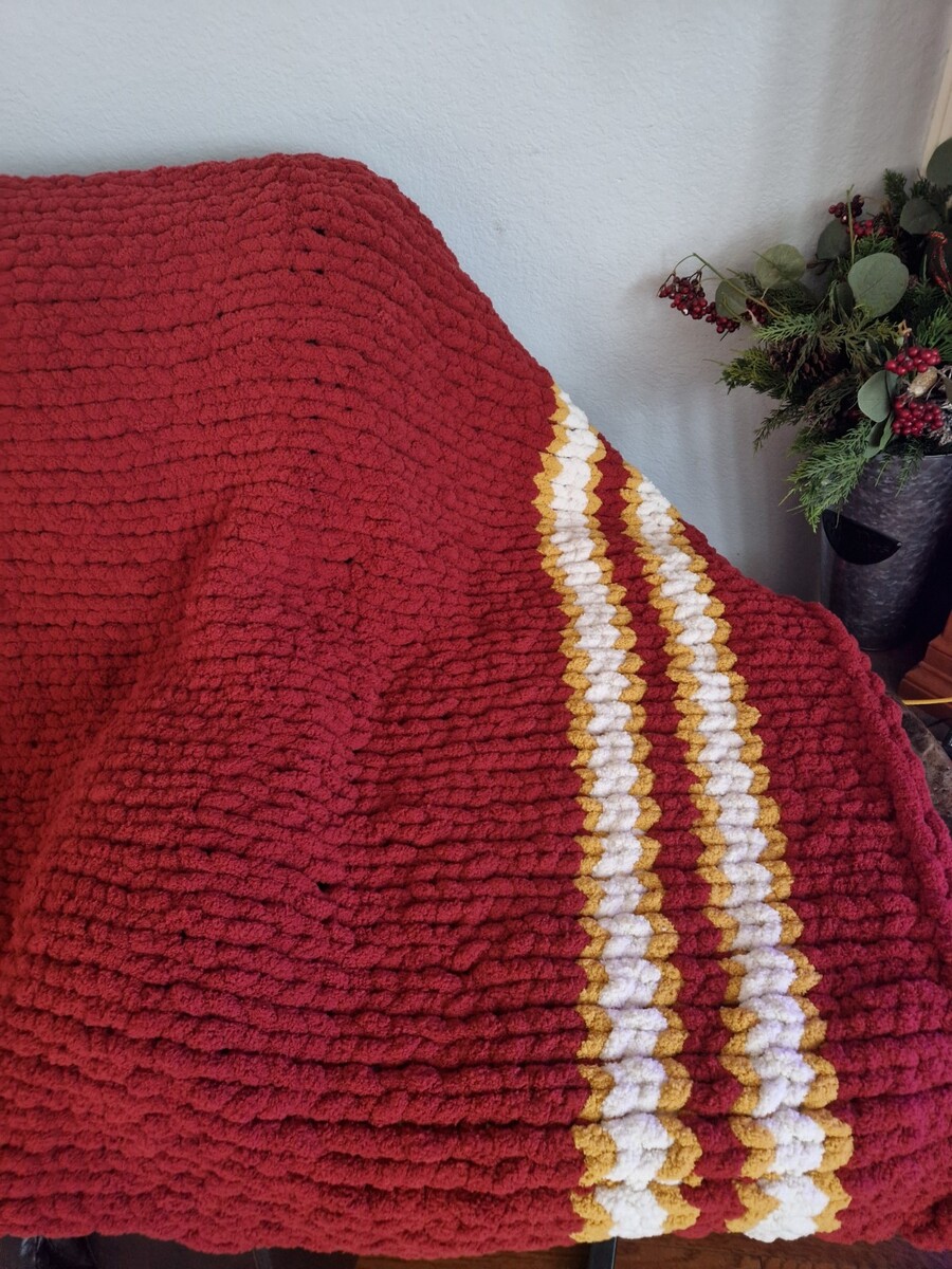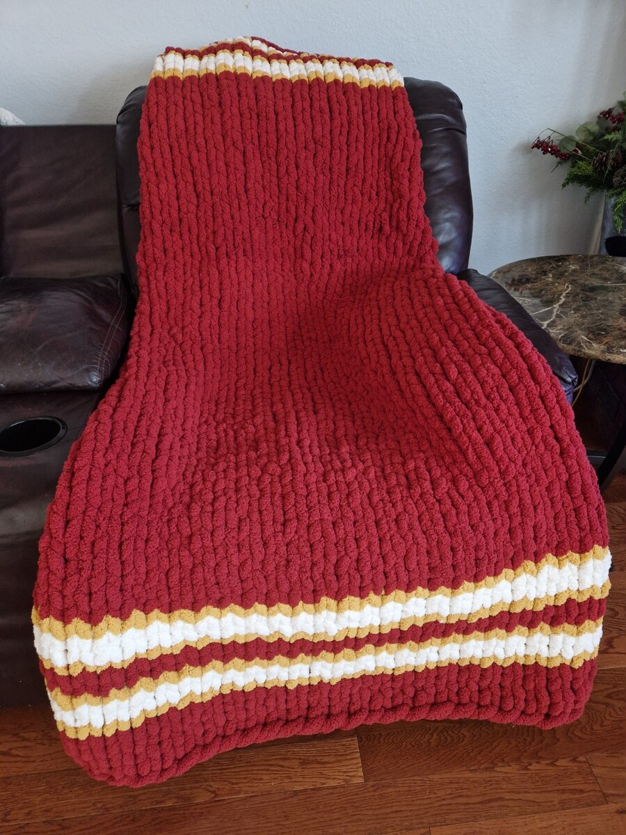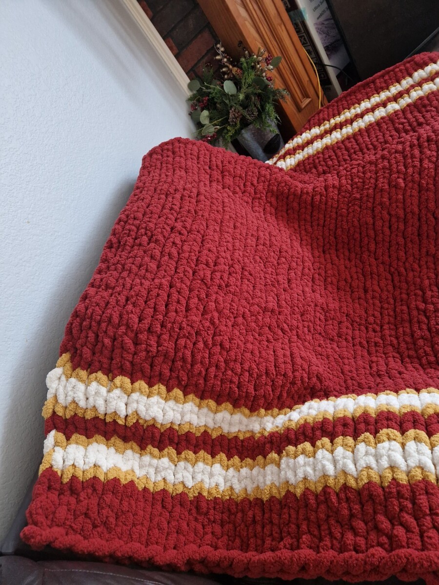 Chunky Knit Chenille Blanket | Super Soft, Hand-Knit Throw | Striped Blanket |