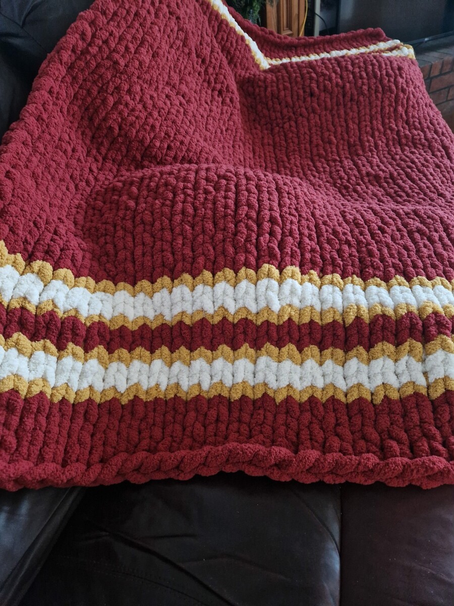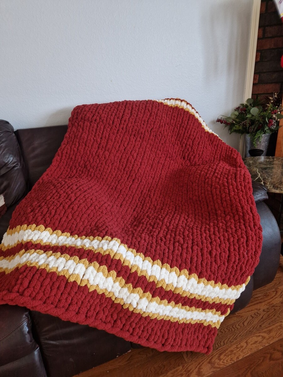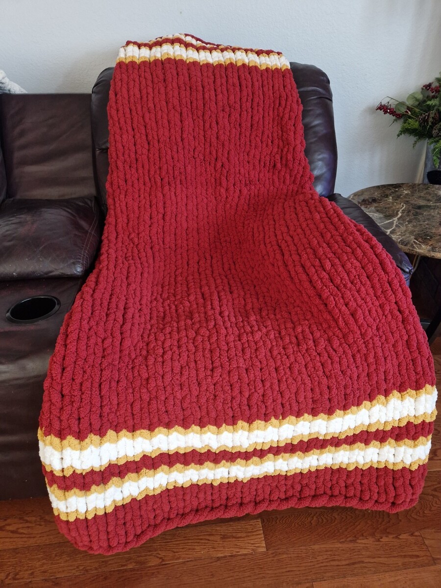 Chunky Knit Chenille Blanket | Super Soft, Hand-Knit Throw | Striped Blanket |