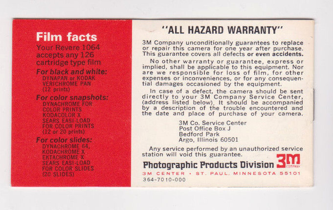 REVERE 1064 Book-Automatic Electric Eye Camera-Instruction Guide-Manual-4.5x2.5"