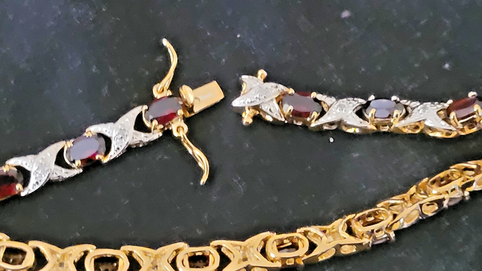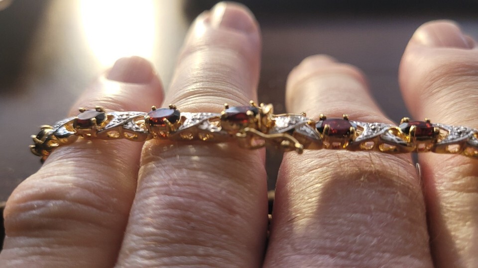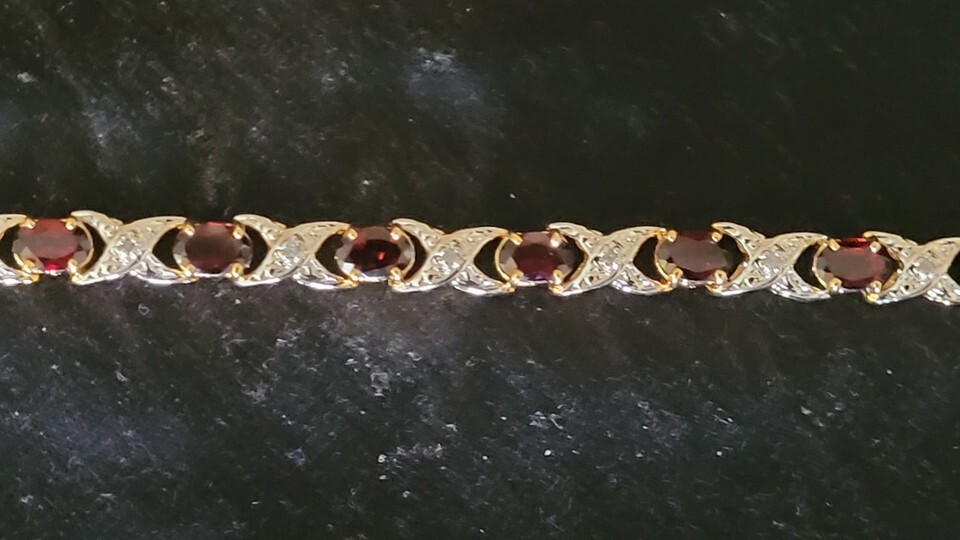 7.34 Cts Natural Garnet and Diamond 18KGP Bracelet