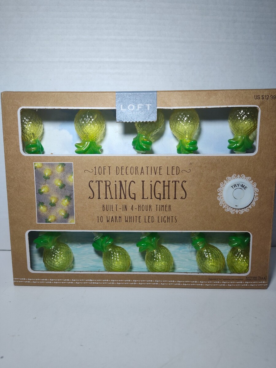 Set of Decorative Pineapple Warm White LED String Lights w/ 4 Hr Timer 10 Ft NEW
