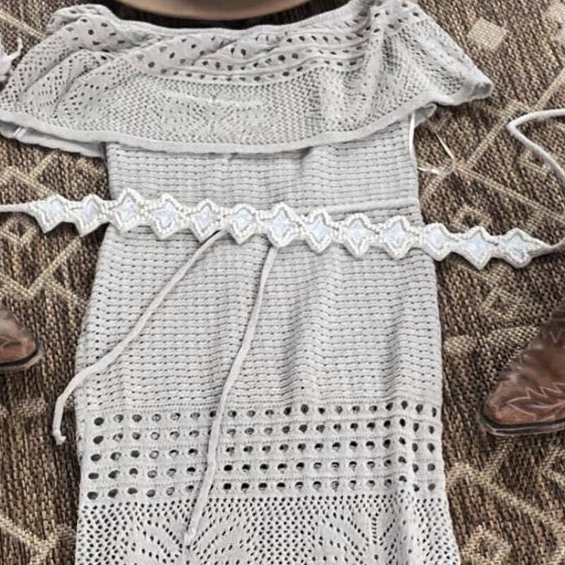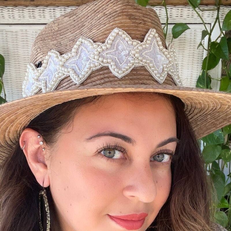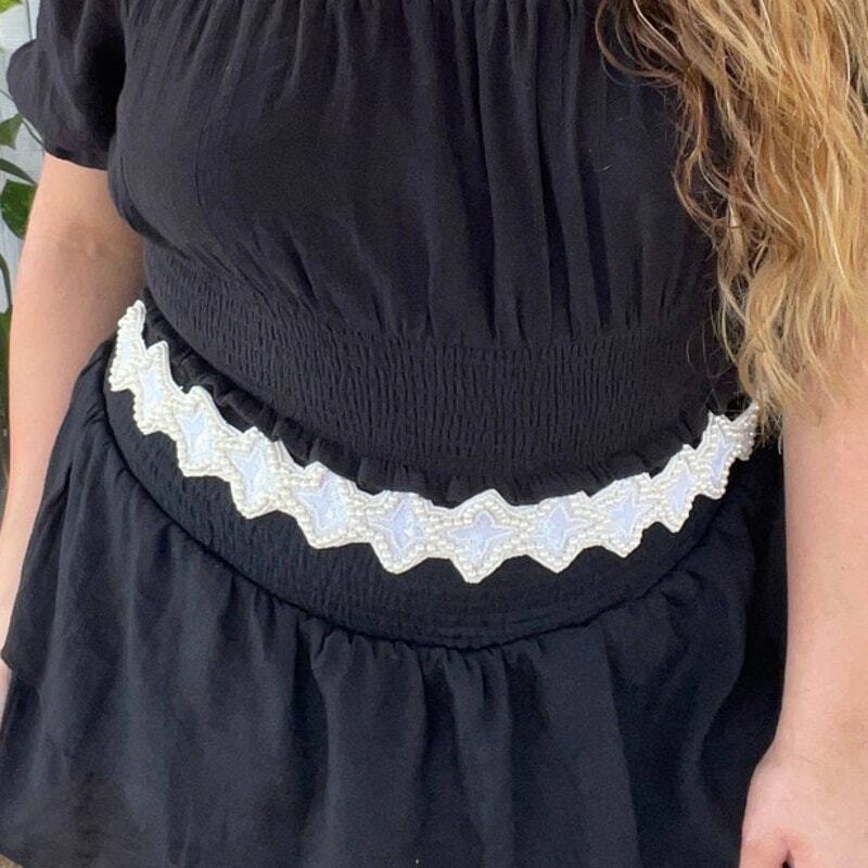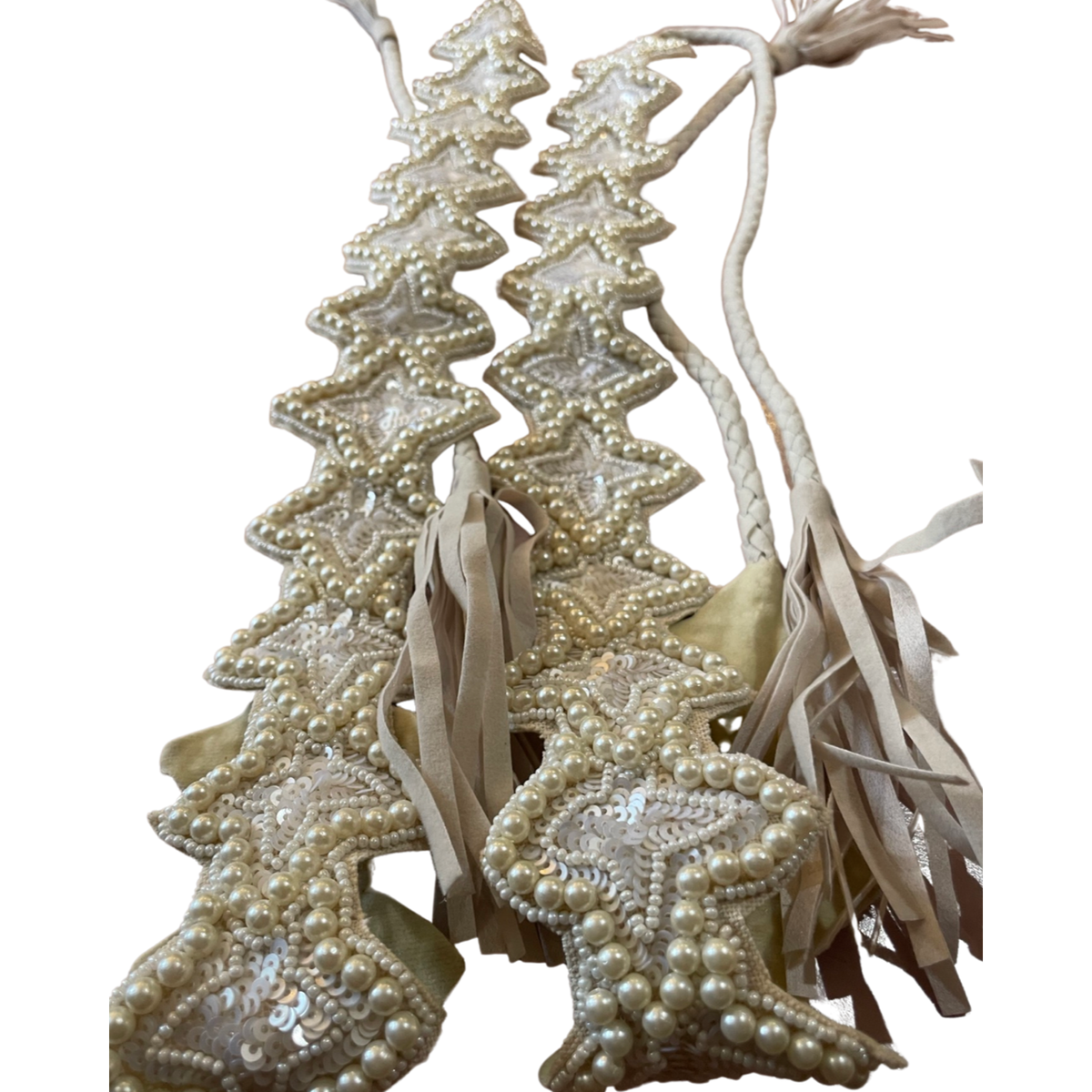 Beaded Star Adjustable Belt or Hat Band Ivory White