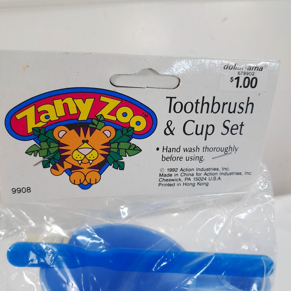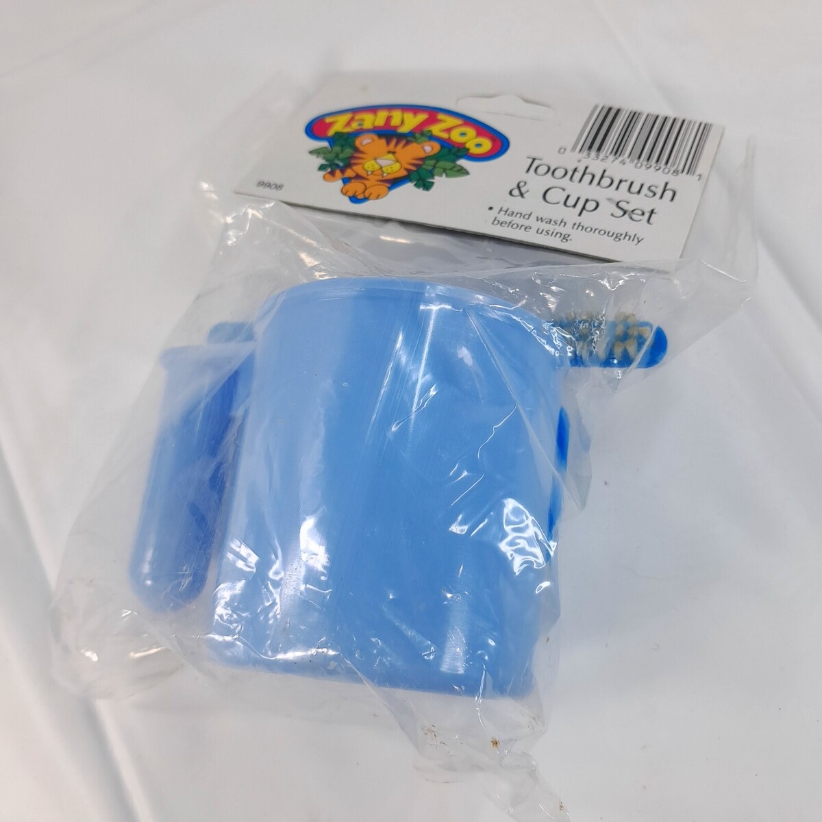 New Zany Zoo Toothbrush & cup set kids toddler blue elephant 80s 90s Hong Kong