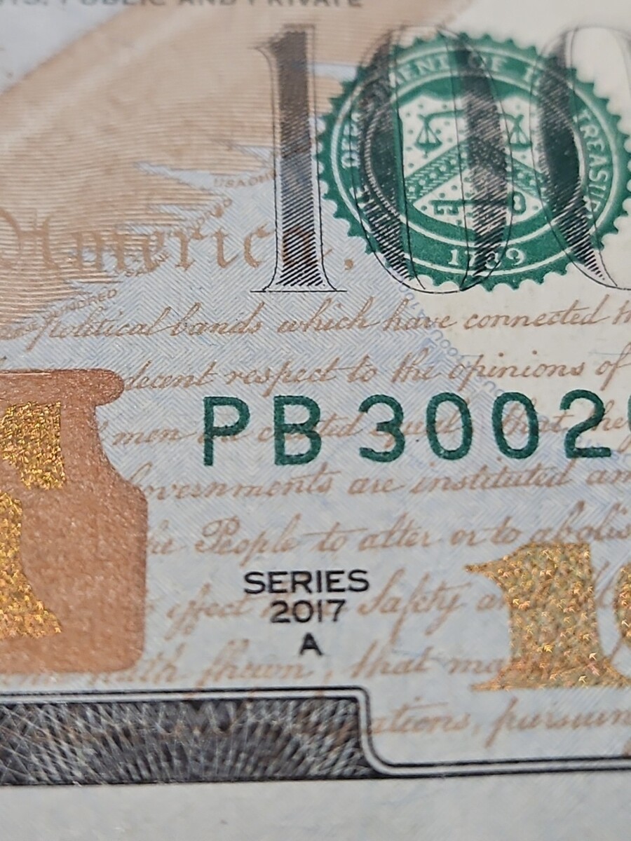 Reapeter $100 Bill PB 30020028 A Series 2017A