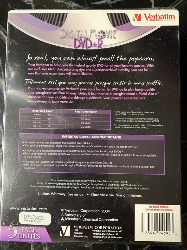 Verbatim 5 Pack Dvd+R Recordable Blank Dv Ds and 18 similar items