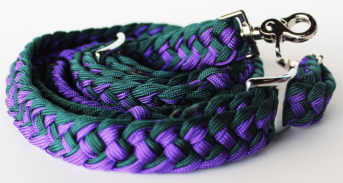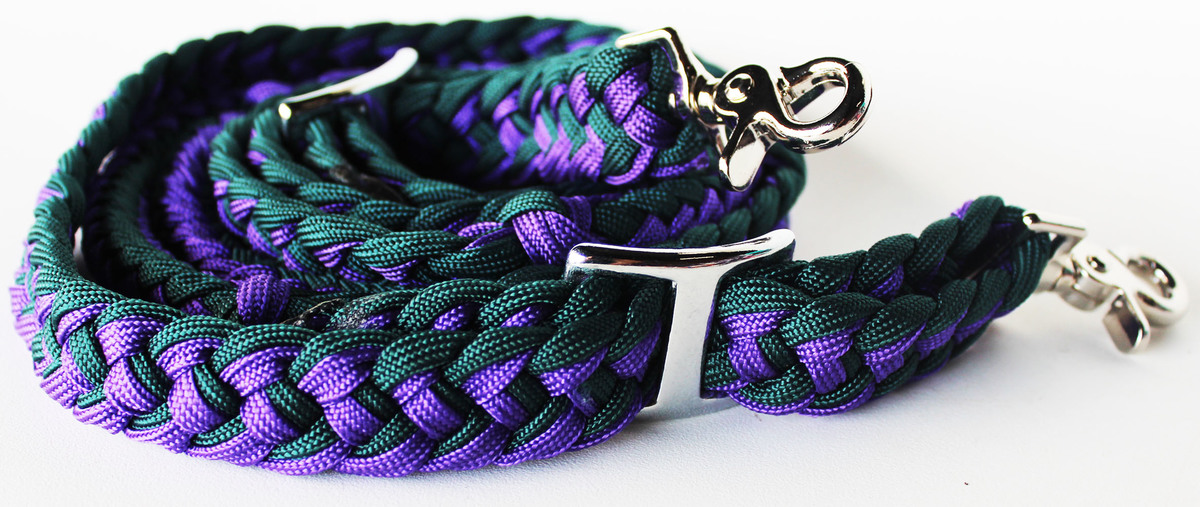 Roping Knotted Horse Western Barrel Reins Nylon Braided Tack Purple Green 60766