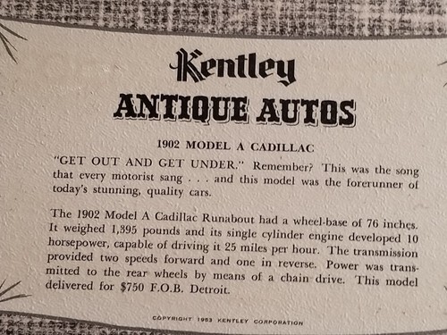 Vintage Kentley Corp. 1953 Buffet Tray ~ 1902 Model A Cadillac ~ 8.5" x 17.25"