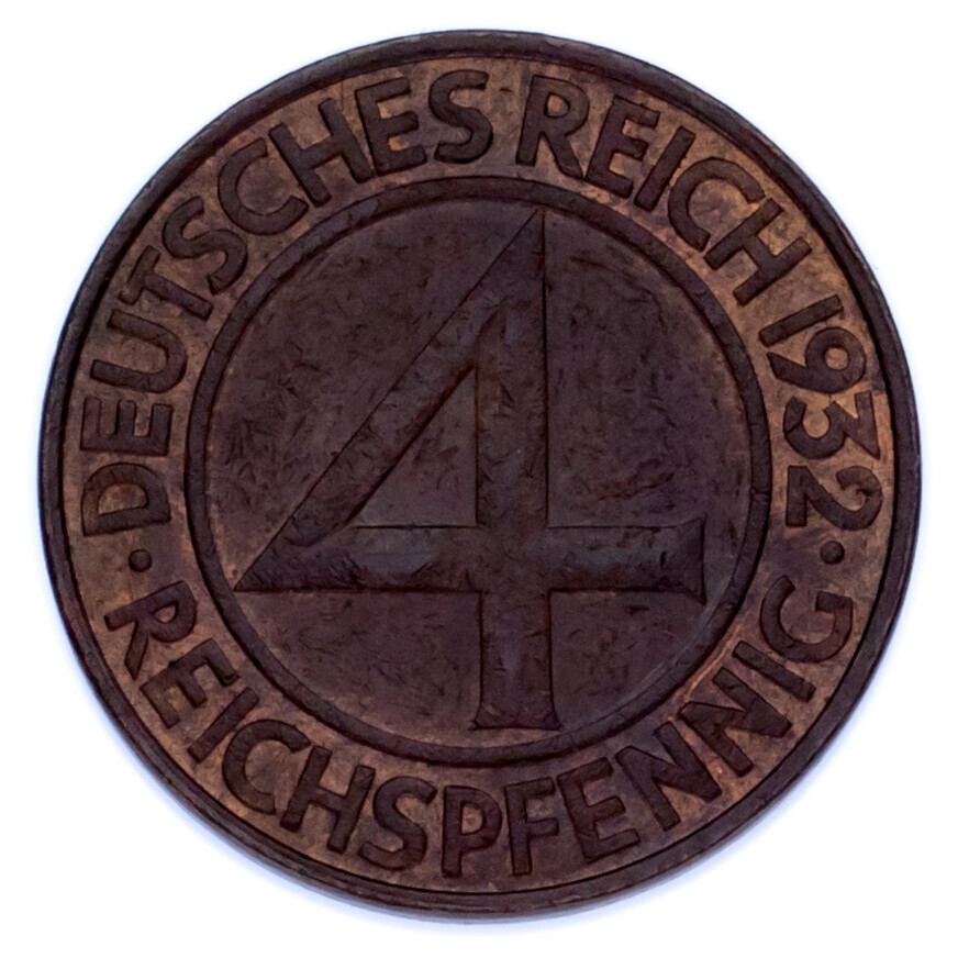 1932-D Germany 4 Rentenpfennig - Mintage: 7,055,000 - KM# 75 - Uncirculated (MS~)